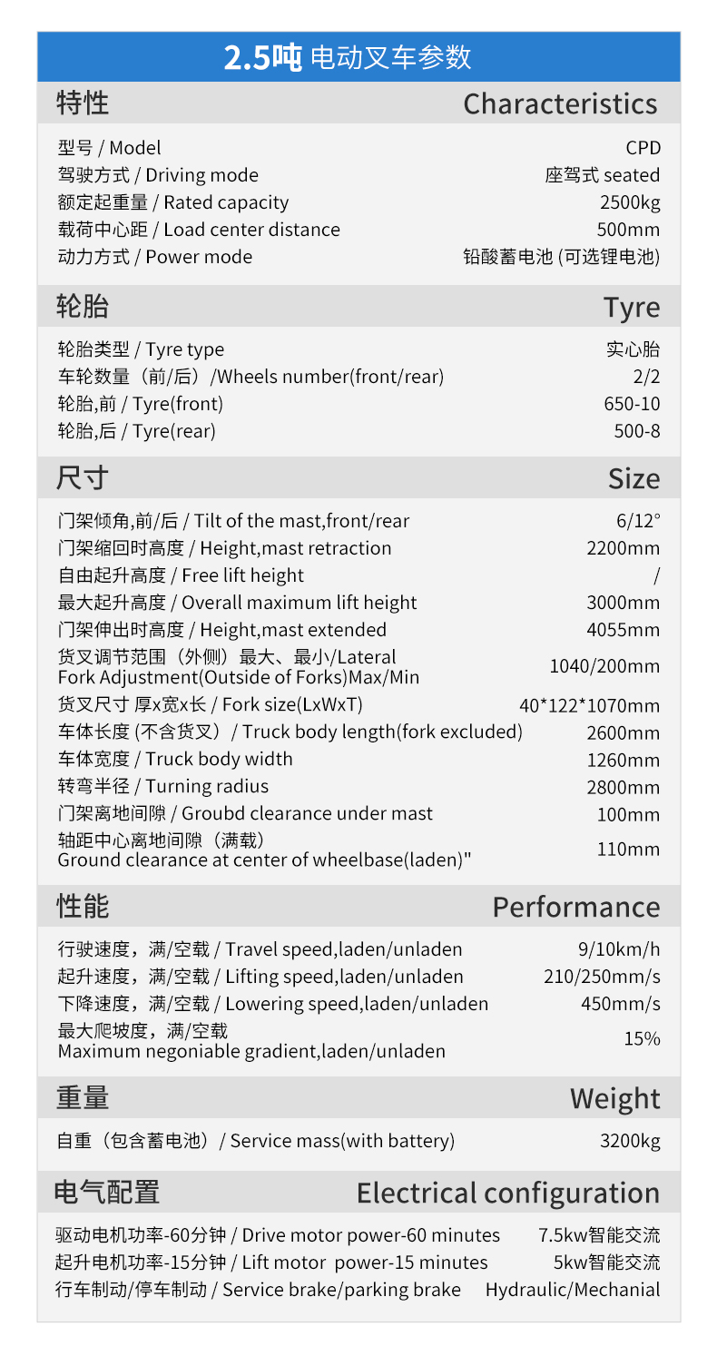 【2.5吨】新能源电动叉车